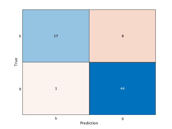 load ionosphere;ionosphereデータセットは,Xに説明変数が34種類,Yに2値の目的変数が入っているデータセットになります。