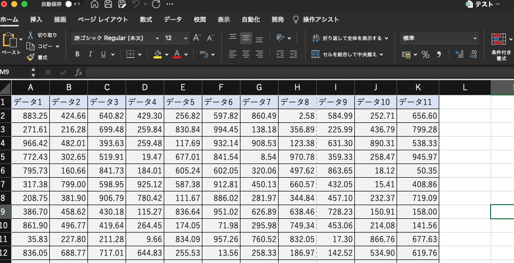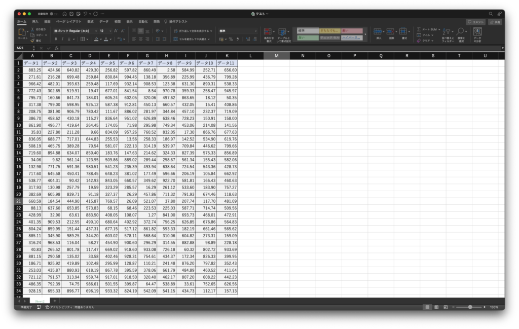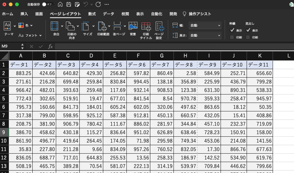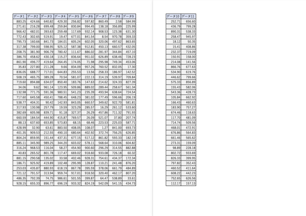 今回は下のようなエクセルデータを使って,PDF1枚に出力する方法をご紹介します。