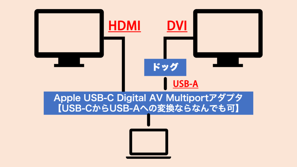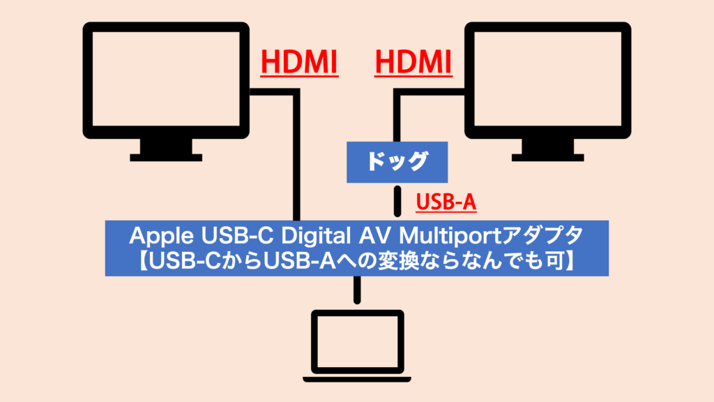 - 1つのドッグで2枚の出力ができる(USB-CからUSB-Aの変換が不要)